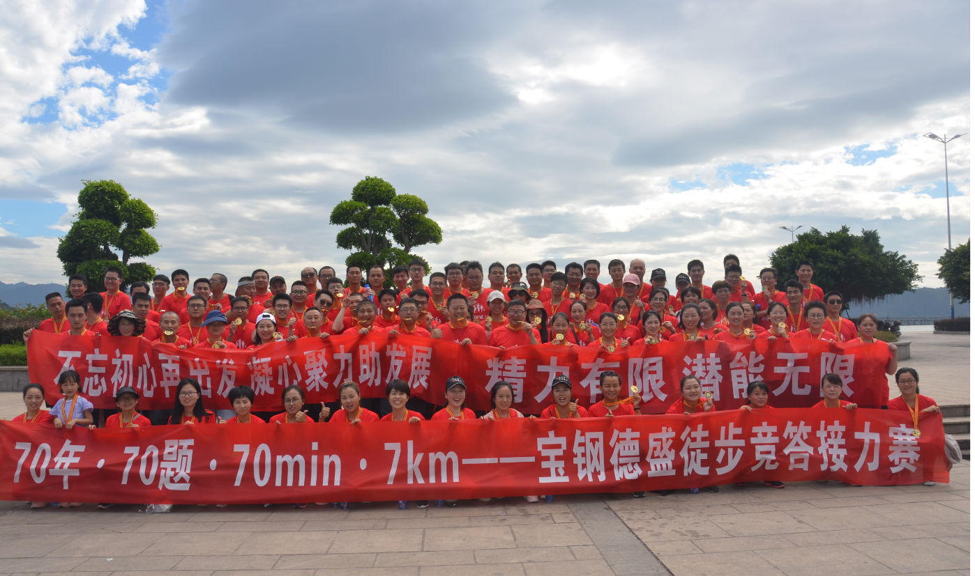 2019年9月21日 ,为热烈庆祝中华人民共和国成立70周年,宝钢德盛举办了“不忘初心再出发,牢记使命助发展”徒步竞答接力活动。此次活动共计160余人参加.